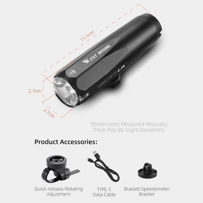 • WEST BIKING YP0701404 Multifunktionales Fahrradlicht Sensing 600 Lumen Typ-C Scheinwerfer Rennradlicht