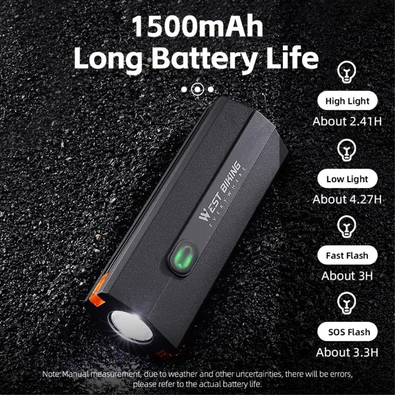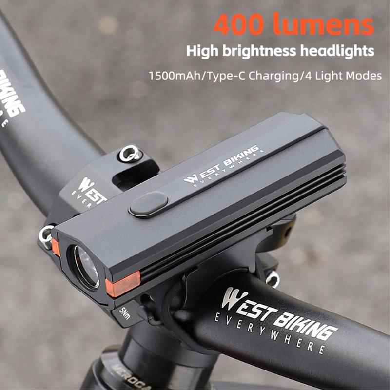 WEST BIKING YP0701407 Kunststoff-Fahrradscheinwerfer 400LM Nacht Radfahren Taschenlampe Fahrrad Vorderlicht - gelb