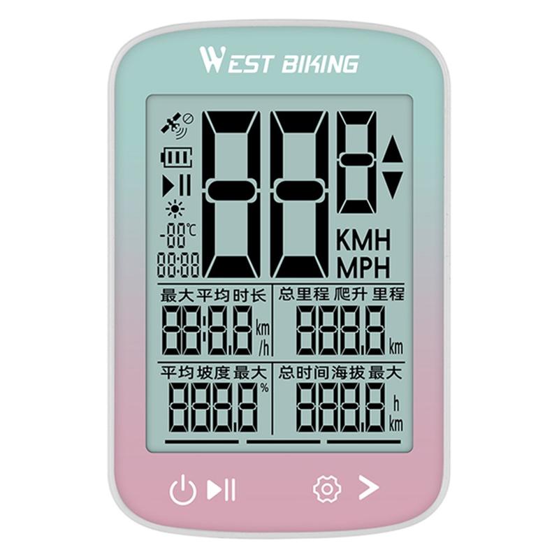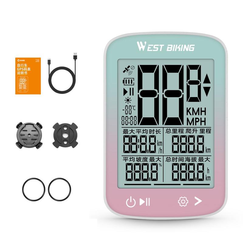 • West Biking YP0702112 GPS-Fahrradcomputer - 2,4-Zoll-FSTN-LCD, 5-System-GPS, IPX7 wasserdicht, USB-C, 800 mAh, 20+ Stunden