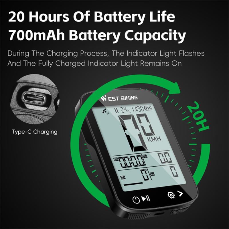 • West Biking YP0702113 GPS-Fahrradcomputer - 2,4-Zoll-Display mit Blendschutz, 5-System-Ortung, IPX7-wasserdicht, 20-Stunden-Akku, CE-zertifiziert