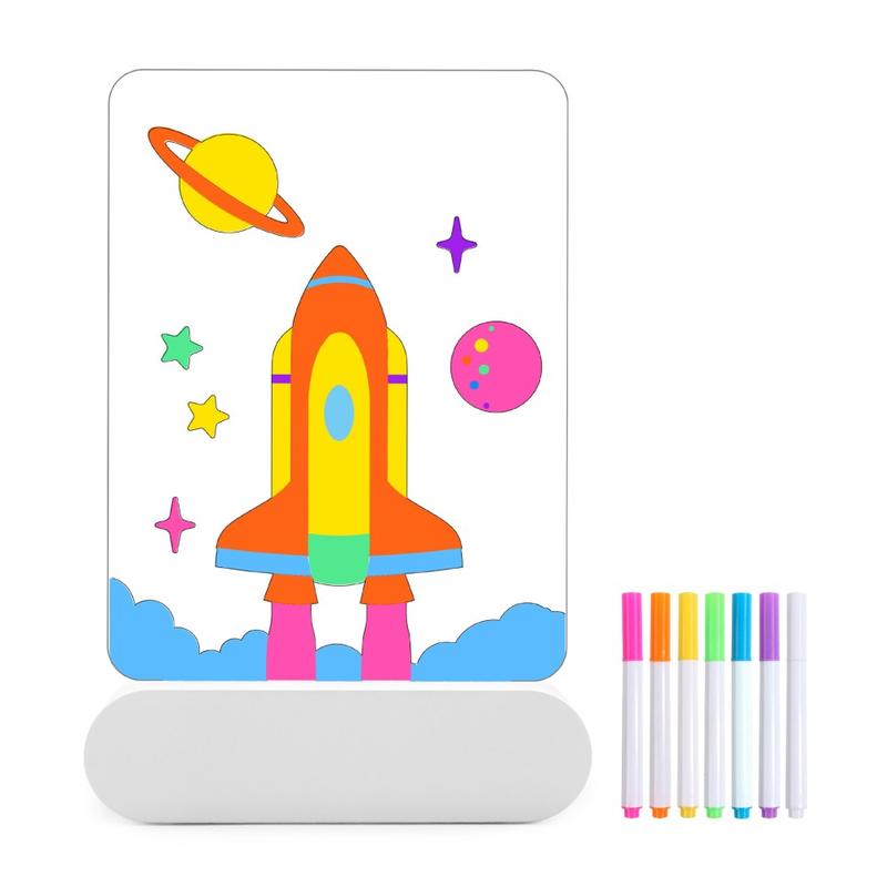 Wiederaufladbare, löschbare LED-Zeichentafel mit 7 Farbstiften - 3D-Acryl-Zeichnung & Memo-Nachtlicht
