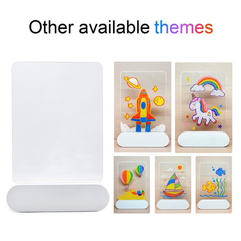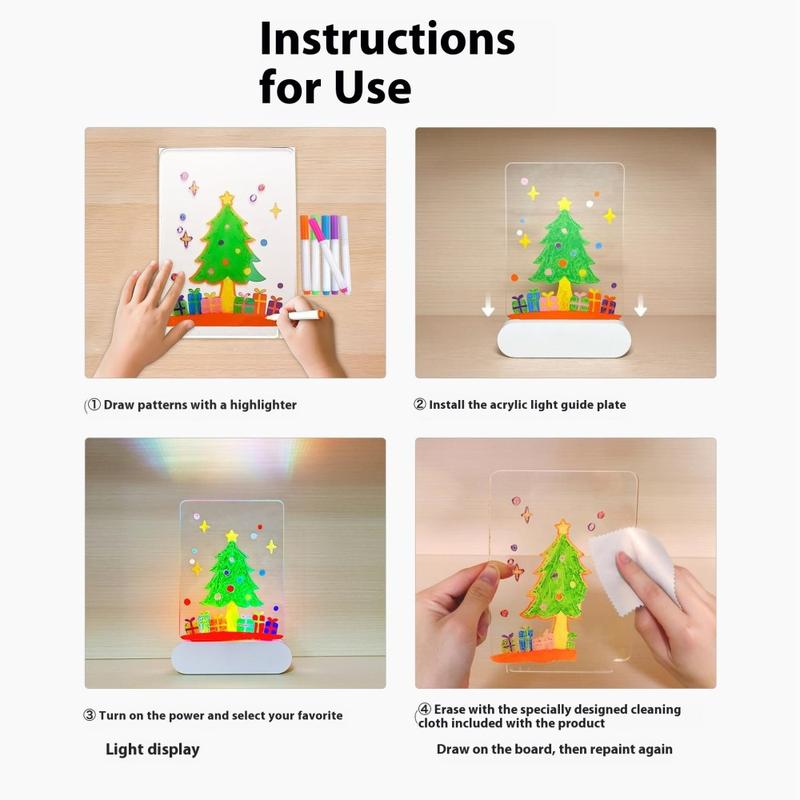 Die LED-Leuchte im Acrylfuß nutzt die Edge-Lighting-Technologie, die das Licht durch die transparente Oberfläche lenkt, um Zeichnungen zum Leuchten zu bringen - dasselbe Prinzip, das auch in High-End-Schildern und 3D-Illusionslampen verwendet wird.