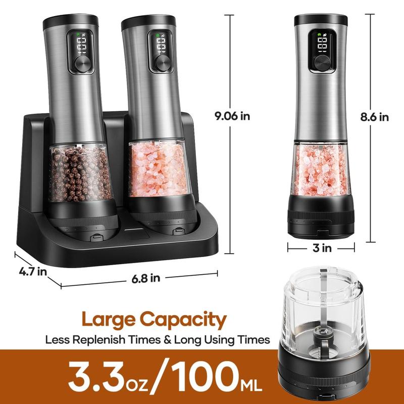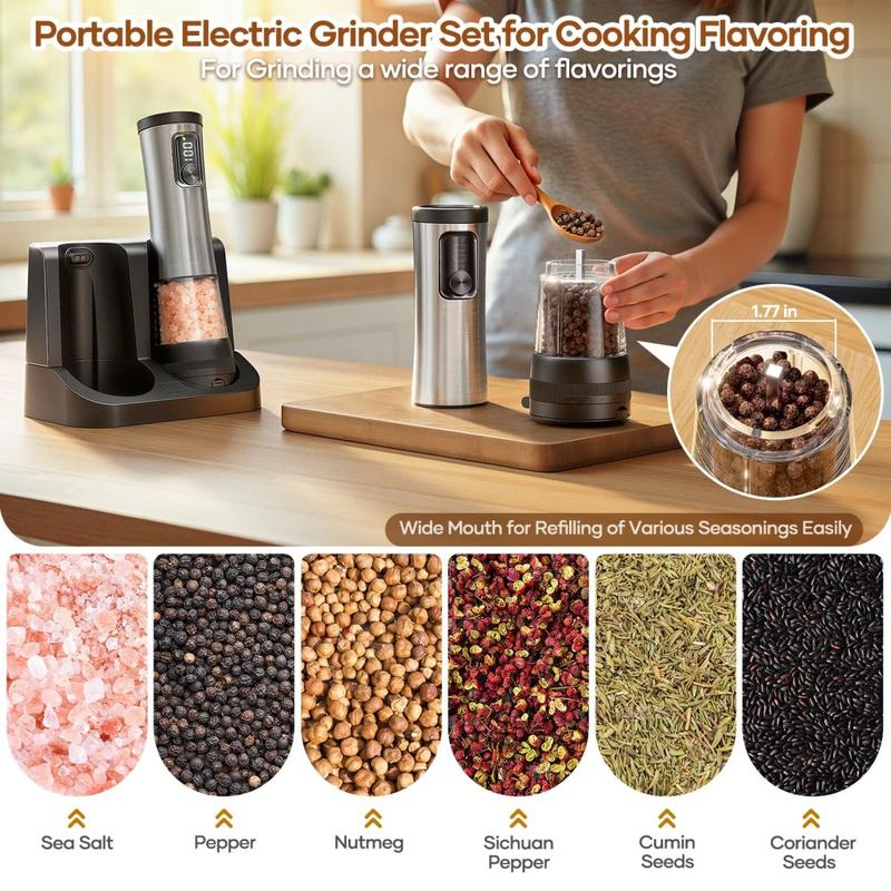 Wiederaufladbares elektrisches Gewürzmahlset aus Edelstahl - Keramikmahlkopf, 5-stufige Grobheitseinstellung, 100ml Fassungsvermögen