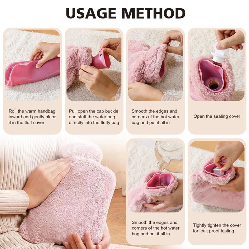 • 2000ml nachfüllbare Wärmflasche mit abnehmbarem Kunstfellbezug - Winter Hand- und Fußwärmer (BPA-frei)