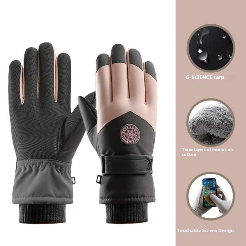 Winddichte Outdoor-Winter-Touchscreen-Handschuhe - Damen - Rosa / Grau