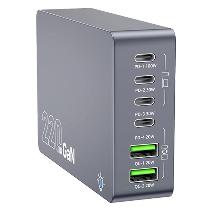 WLX-F8A 220W GaN-Desktop-Ladestation - 6-Port-Schnellladeadapter - EU-Stecker, 4x USB-C, 2x USB-A