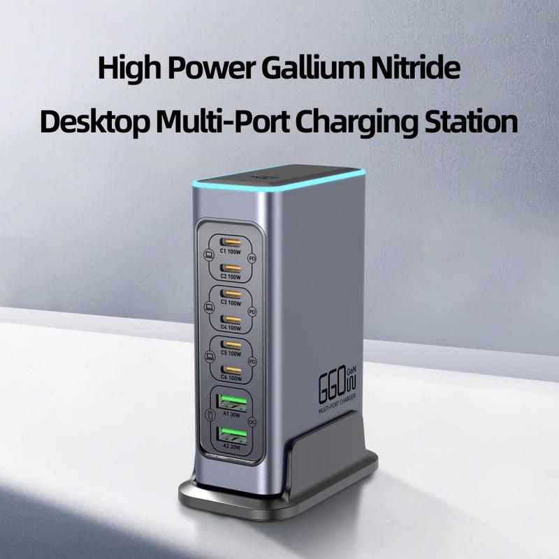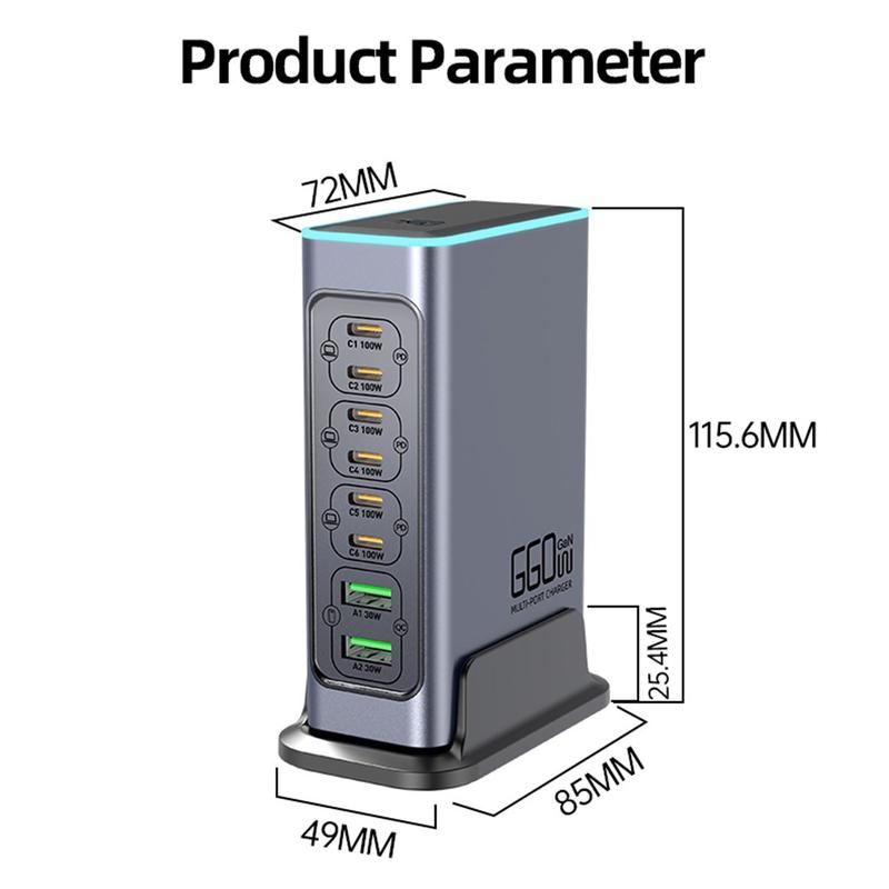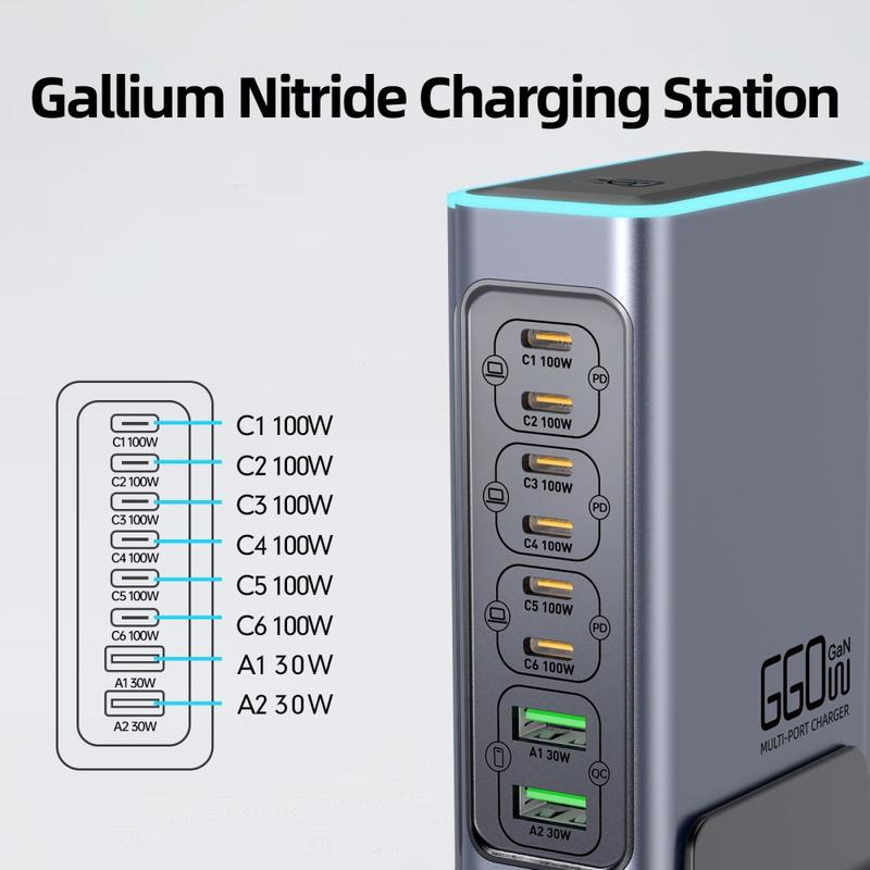- Insgesamt 8 Anschlüsse: 6 x USB-C + 2 x USB-A zum gleichzeitigen Laden mehrerer Geräte