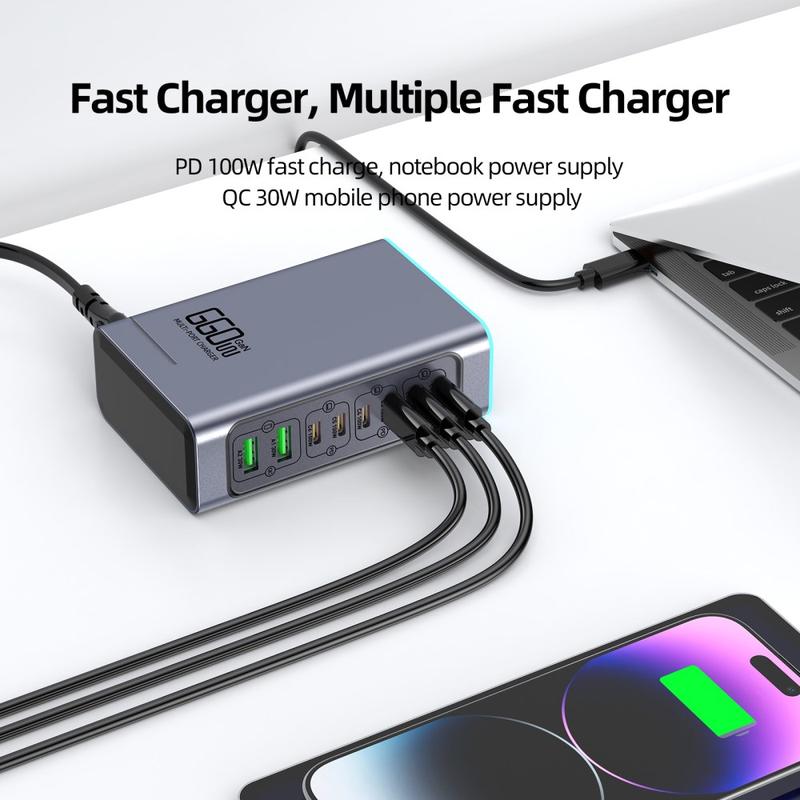 - GaN-Technologie mit einer maximalen Gesamtleistung von bis zu 660W (die Gesamtleistung wird auf die Anschlüsse verteilt)