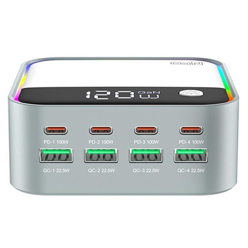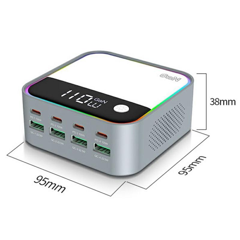 WLX-M8 120W Desktop-Ladestation mit RGB-Beleuchtung - 8-Port GaN-Schnellladegerät mit 4x USB-C, 4x USB-A, EU-Stecker