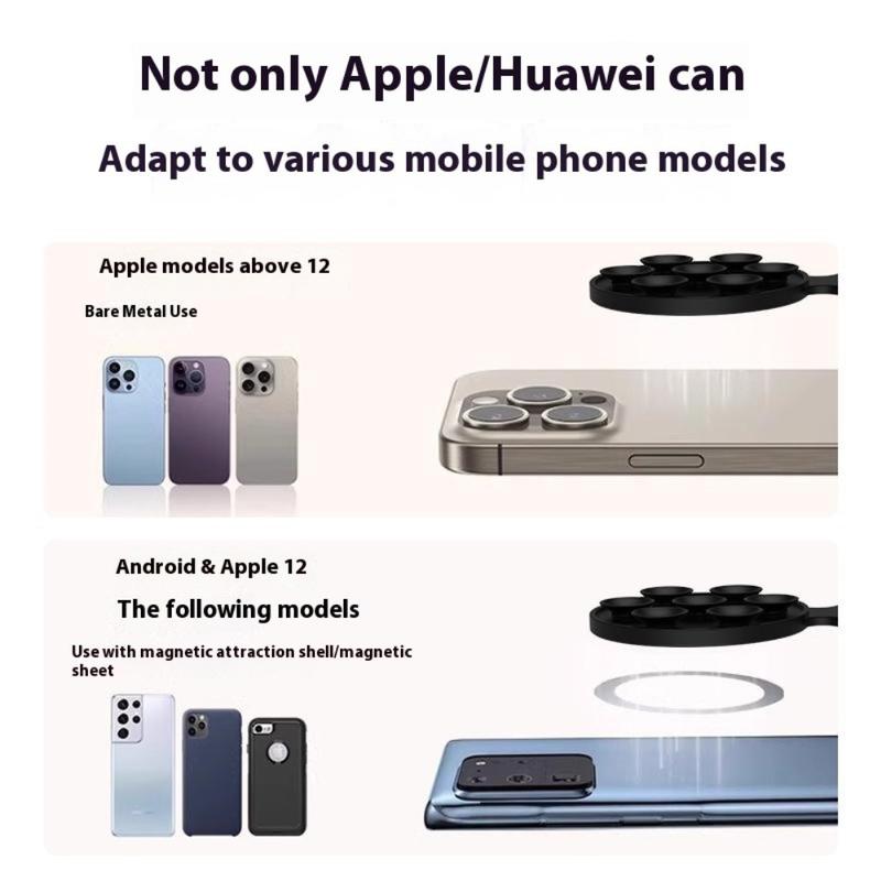 Zwölf N52 Neodym-Magnete arbeiten mit einem dichten Silikon-Saugnapf-Array zusammen, um Ihr Telefon in Sekundenschnelle an Glas, Fliesen, Metall oder glänzenden Armaturenbrettern zu befestigen. Das geschlossene Magnetfeld hält Geräte bis zu 1 kg, ohne den GPS- oder 5G-Empfang zu stören, während der vakuumähnliche Saugnapf auch auf holprigen Straßen hält.
