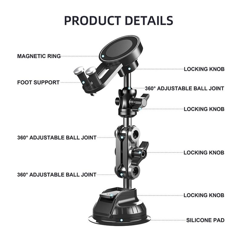 Die X037 MagSafe-kompatible Autotelefonhalterung bietet Stabilität, Haltbarkeit und Vielseitigkeit in einem einzigen Paket. Durch die Kombination eines starken N52-Magneten mit einem stabilen Saugnapf-Sockel wird sichergestellt, dass Ihr Telefon nicht verrutscht oder klappert. Der verstellbare Arm und die 360°/180°-Drehung sorgen für eine ergonomische Sicht und machen diese Halterung sowohl für den täglichen Pendlerverkehr als auch für lange Autofahrten unverzichtbar.