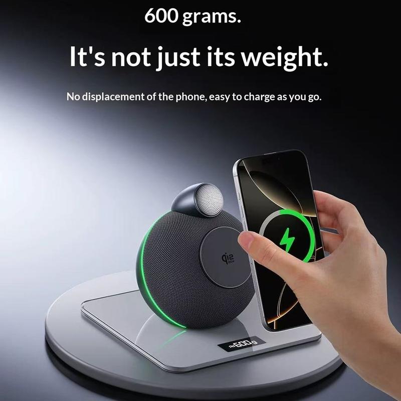 • X16 Qi 2.2 25W Ladestation mit Bluetooth-Lautsprecher und Umgebungsbeleuchtung - 3-in-1-Magnetladegerät für Smartphone, Smartwatch und Ohrhörer