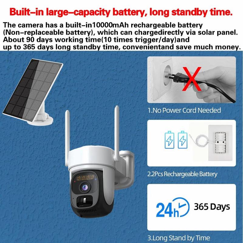 - Selbstaufladung durch Solarenergie - Zwei 21700-Zellen werden kontinuierlich über das mitgelieferte 6-Watt-Panel aufgeladen und ermöglichen bis zu drei Monate Standby-Betrieb mit einer einzigen Ladung und ohne Stromkosten.