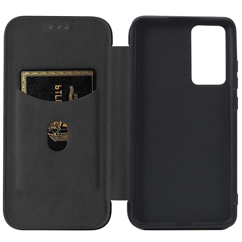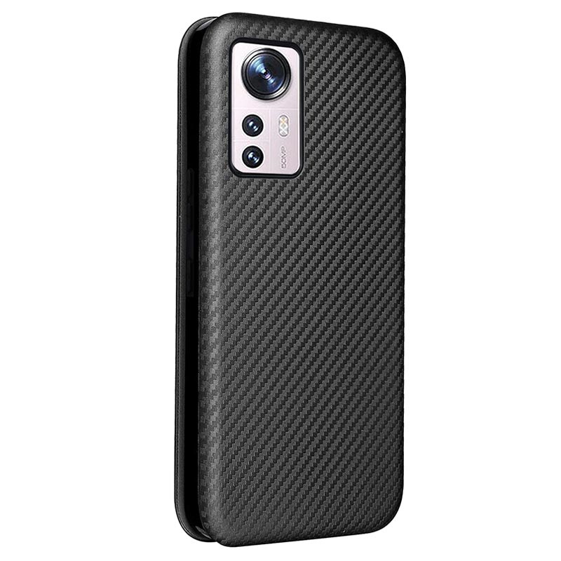 Schützen Sie Ihr Xiaomi 12 Pro mit dieser Flip Schutzhülle mit Carbon-Struktur.