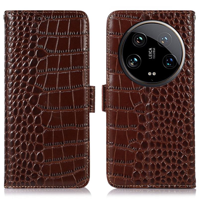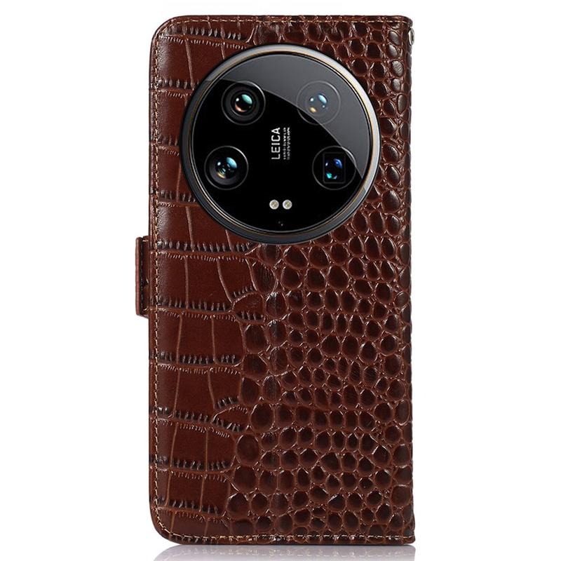 Crocodile Serie Lederhülle mit Geldbörse mit RFID für Xiaomi 14 Ultra