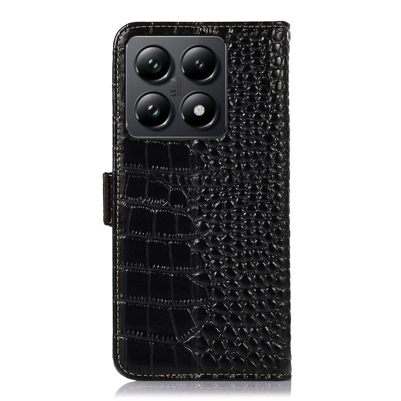 • Crocodile Serie Lederhülle mit Geldbörse mit RFID für Xiaomi 14T