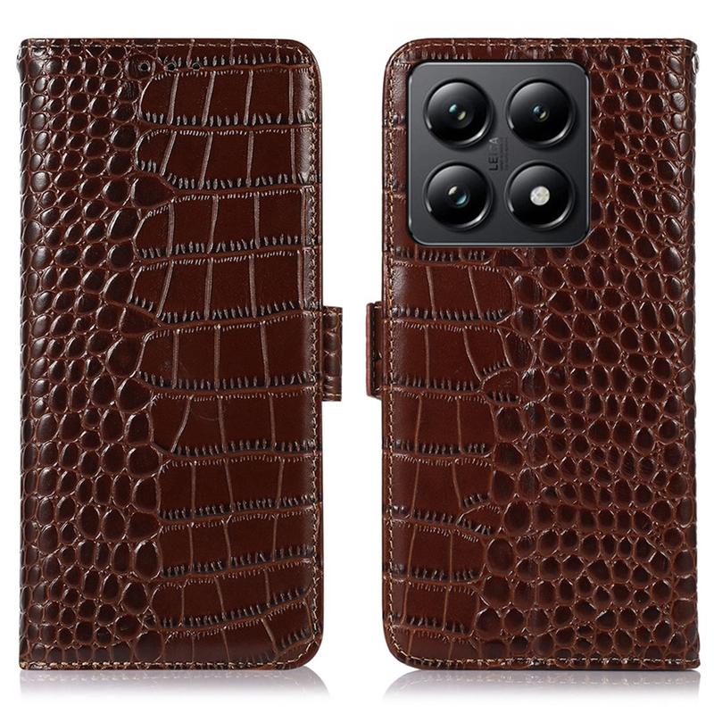 Crocodile Serie Lederhülle mit Geldbörse mit RFID für Xiaomi 14T