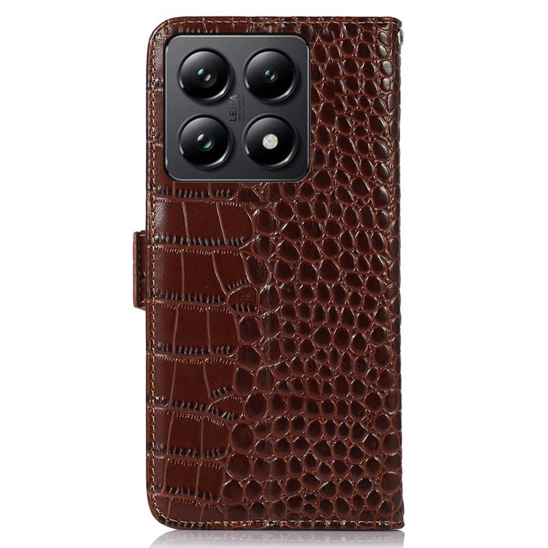 Xiaomi 14T Pro Crocodile Serie Lederhülle mit Geldbörse mit RFID - Braun