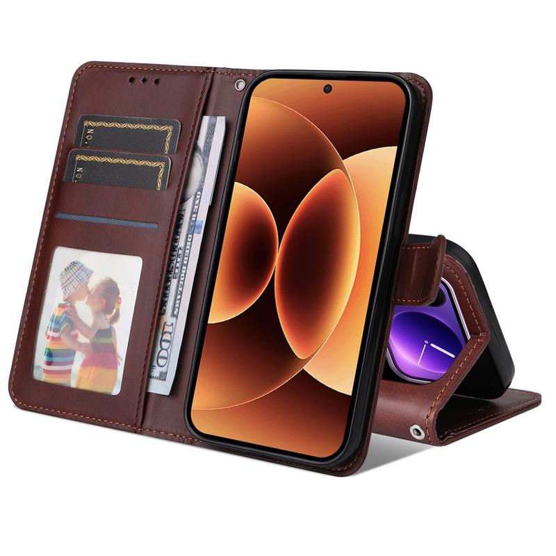 Verleihen Sie Ihrem neuen Xiaomi 17 Pro Max einen raffinierten Vintage-Look und ersetzen Sie gleichzeitig Ihr tägliches Portemonnaie. Die Außenseite aus Polyurethan mit Crazy-Horse-Struktur und die stoßdämpfende TPU-Schale schützen vor Stürzen und Kratzern, während clevere Fächer für Karten und Bargeld sorgen.
