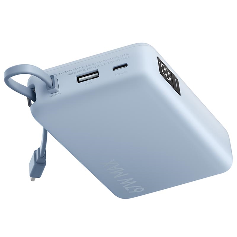 Diese Powerbank ist ideal, wenn Sie schnelles Laden mit einem reisefreundlichen Design wünschen. Die 67-W-Ausgangsleistung deckt mehr als nur Telefone ab, das 65-W-Aufladen reduziert Ausfallzeiten und das integrierte USB-C-Kabel erleichtert das Verpacken und die Verwendung an jedem Ort. Mit dem übersichtlichen Digitaldisplay und dem Multi-Port-Laden erhalten Sie eine zuverlässige Stromversorgungslösung für Arbeit, Reisen und den täglichen Gebrauch.