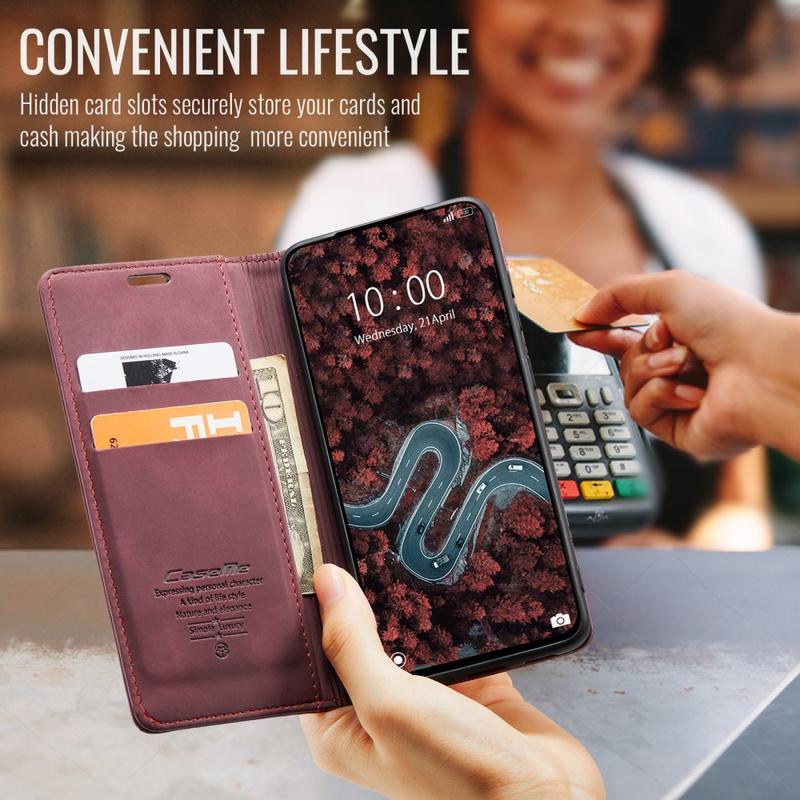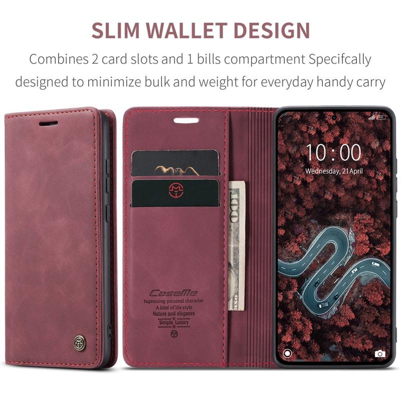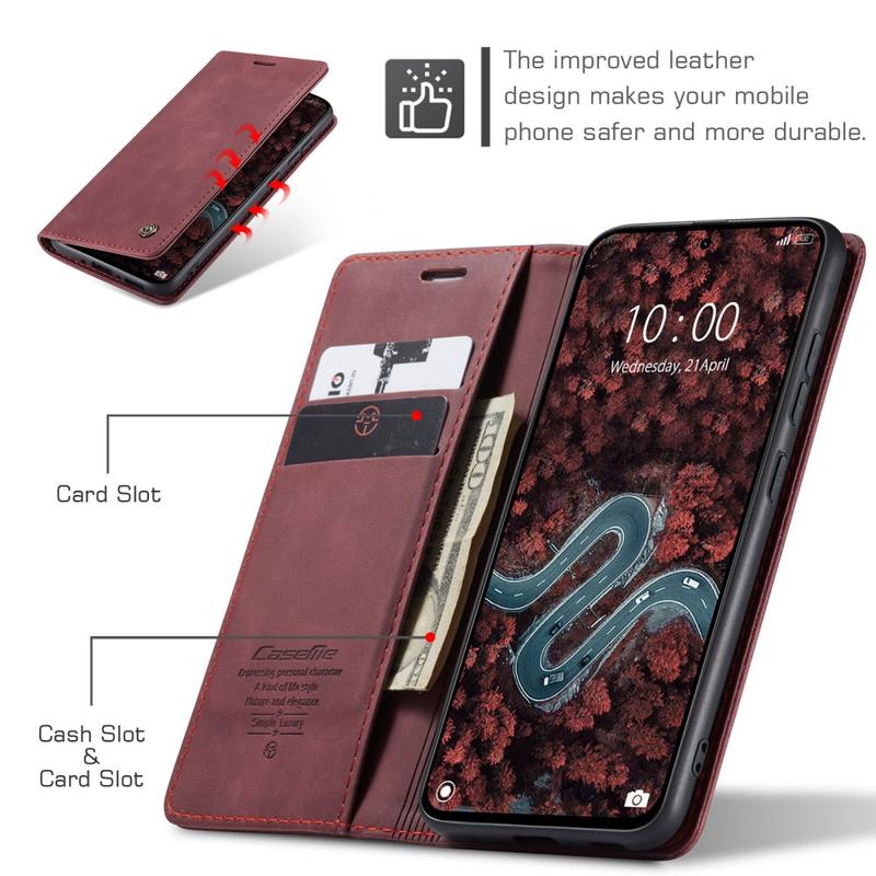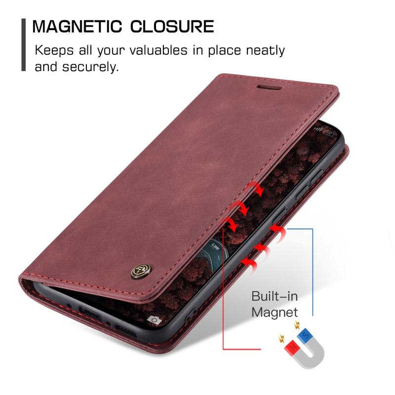 - Eingebaute Magnete halten die Caseme 013 Series Wallet-Hülle geschlossen