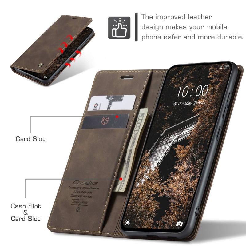 - Eingebaute Magnete halten die Caseme 013 Series Wallet-Hülle geschlossen