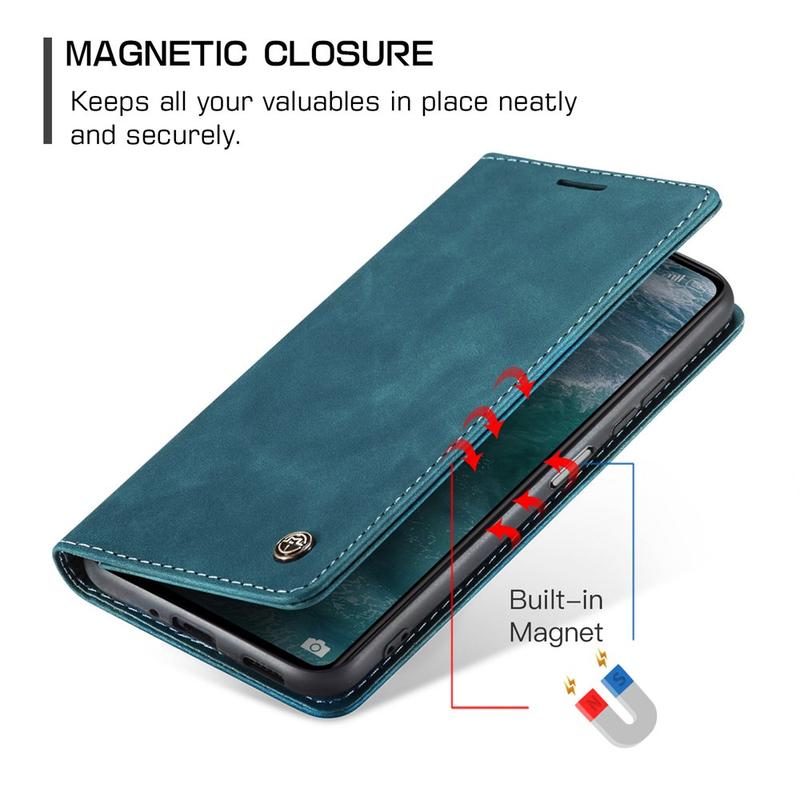 - Eingebaute Magnete halten die Caseme 013 Series Wallet-Hülle geschlossen