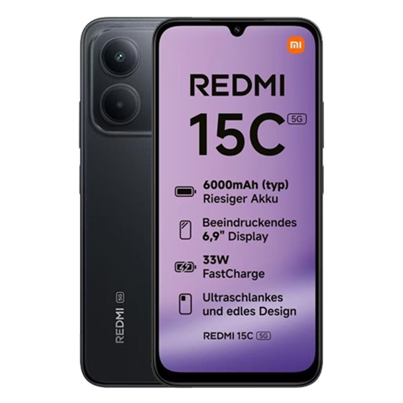 Das Xiaomi Redmi 15C 5G verfügt über ein großes 6,9-Zoll-Display mit einer adaptiven Bildwiederholfrequenz von 120 Hz, das eine flüssige und reaktionsschnelle Darstellung für tägliche Aufgaben, Videostreaming und Webbrowsing bietet. Das 50-MP-KI-Dual-Kamera-System fängt gestochen scharfe, lebendige Bilder ein, die alltägliche Momente in hoher Detailgenauigkeit festhalten. Ausgestattet mit dem MediaTek Helio G81-Ultra Octa-Core-Chipsatz liefert es den ganzen Tag über eine reibungslose und effiziente Leistung ohne Verlangsamungen. Der leistungsstarke 6000-mAh-Akku sorgt für eine lange Nutzungsdauer und unterstützt 33-W-Turboaufladung für schnelles und bequemes Aufladen, wo immer Sie sind.