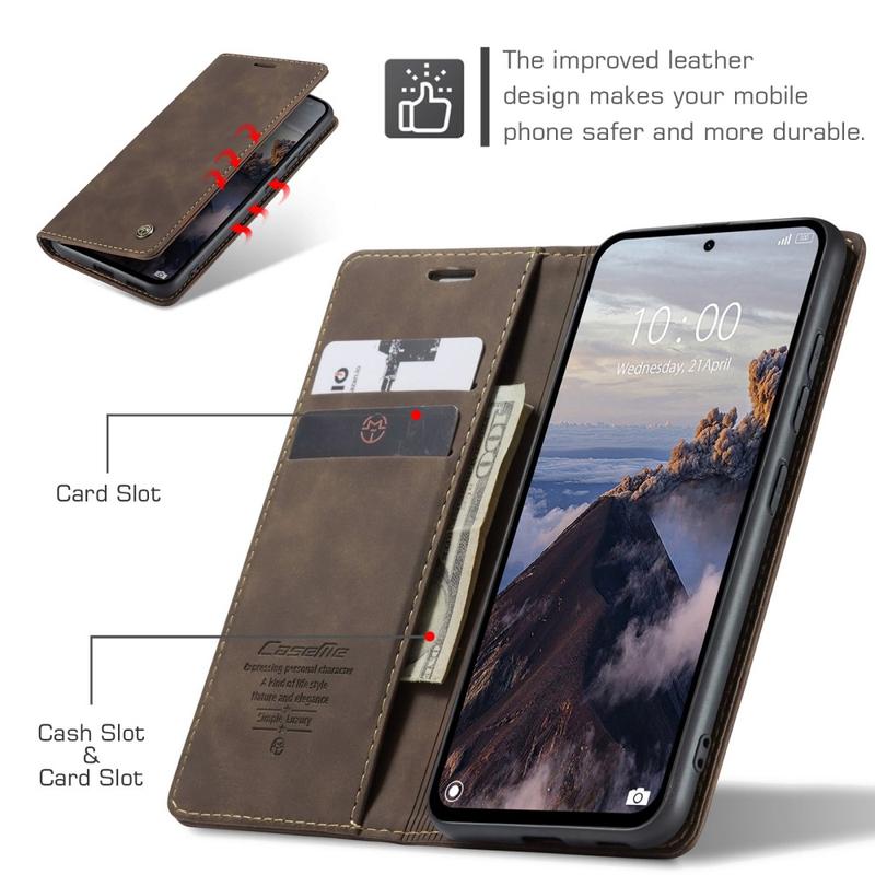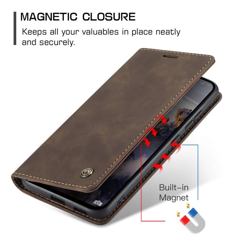 - Eingebaute Magnete halten die Caseme 013 Series Wallet-Hülle geschlossen