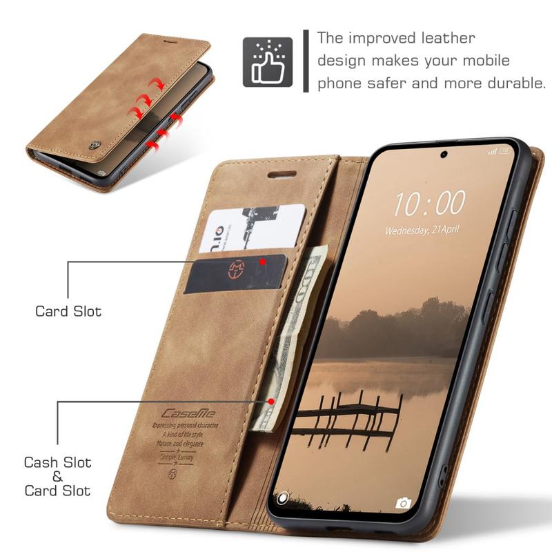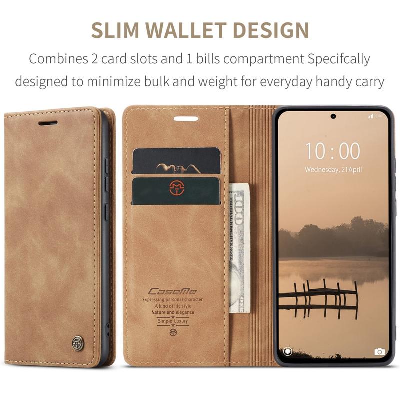 - Eingebaute Magnete halten die Caseme 013 Series Wallet-Hülle geschlossen