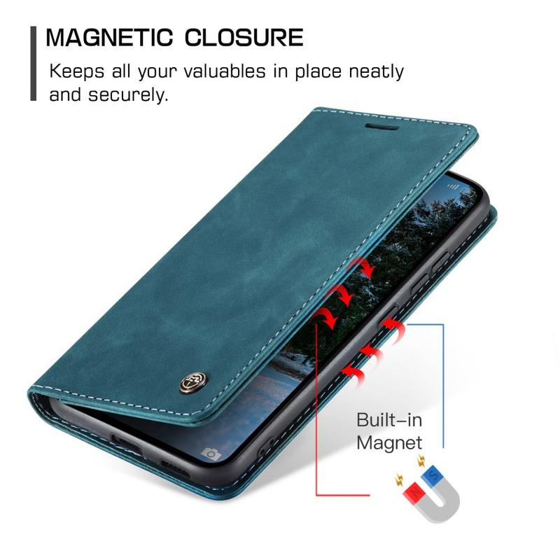 - Eingebaute Magnete halten die Caseme 013 Series Wallet-Hülle geschlossen