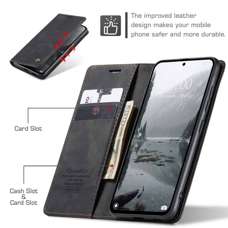 - Eingebaute Magnete halten die Caseme 013 Series Wallet-Hülle geschlossen