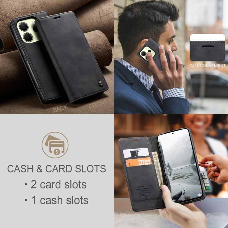 Tragen Sie mit dem Xiaomi Redmi Note 14 4G Ihre wichtigsten Karten und Ihr Bargeld mit sich, dank dieser Caseme 013 Series Brieftaschenhülle!