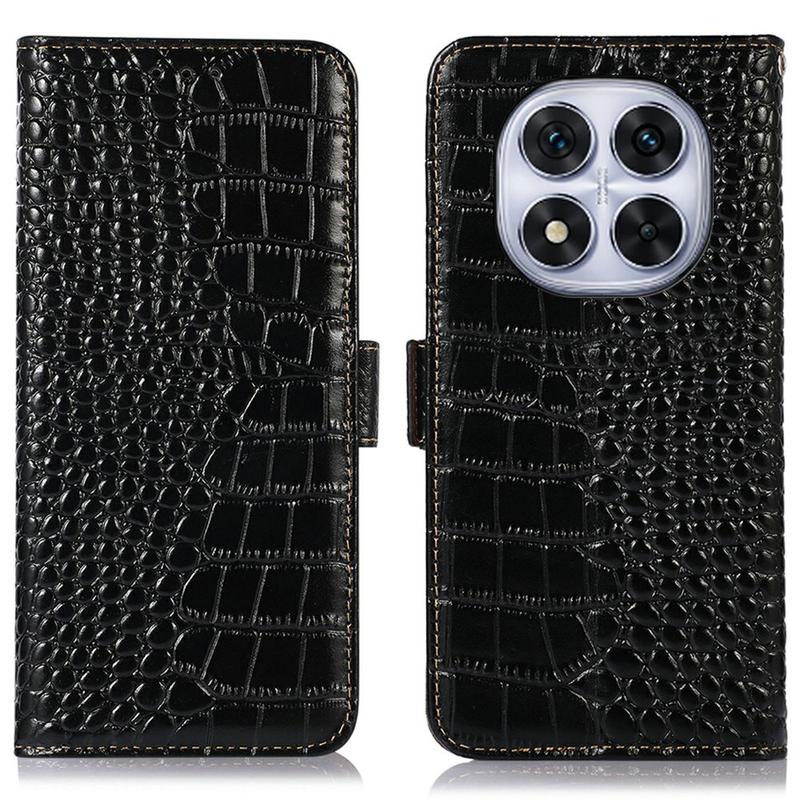 • Crocodile Serie Lederhülle mit Geldbörse mit RFID für Xiaomi Redmi Note 14 Pro 5G, Poco X7