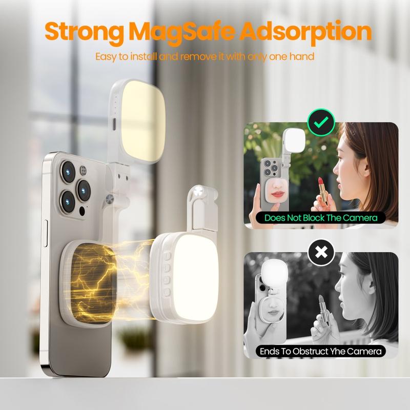 Verbessern Sie Ihre Fotos, Videoanrufe und Live-Streams mit dem magnetischen LED-Fülllicht XJ105 - einem ultraportablen Beleuchtungswerkzeug, das für Kreative, Pendler und alle entwickelt wurde, die sich auf Knopfdruck ein schmeichelhaftes Licht wünschen. Dank der starken Magnetbefestigung können Sie es mit einer Hand anbringen, ohne die Kameras Ihres Smartphones zu verdecken. Und wenn Ihr Smartphone nicht magnetisch ist, löst der mitgelieferte Magnetring dieses Problem in Sekundenschnelle. Mit 48 LED-Perlen (warm + kühl), 3 Farbtemperaturmodi und 10 Helligkeitsstufen können Sie schnell den richtigen Look einstellen - weich und warm für Abendinhalte, neutral für Besprechungen oder kühl und klar für Detailaufnahmen. Dank des faltbaren Designs und der Drehbarkeit in mehrere Winkel wird das XJ105 zu Ihrem kompakten Studioblitz, der in jede Tasche passt.