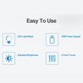 - Dank der LED-Effizienz von 5 V verbraucht die Leuchte bei mittlerer Helligkeit weniger als 0,5 A und ist damit auch für Handy-Netzteile geeignet.