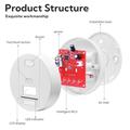 Stummschaltfunktion und Selbstüberprüfung: Der Alarm verfügt über eine praktische Stummschaltfunktion, um Fehlalarme oder störende Alarme zu unterdrücken. Die Selbstüberprüfungsfunktion stellt außerdem sicher, dass der Alarm ordnungsgemäß funktioniert und gibt Ihnen Sicherheit.