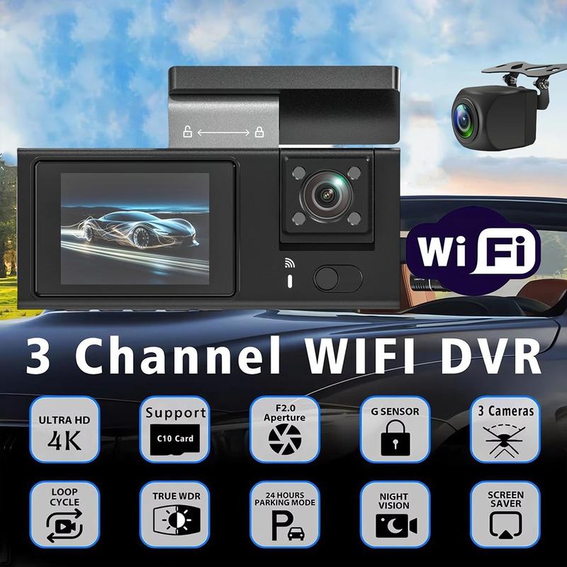 Y08 4K Dash Cam mit drei Objektiven - Front-, Innen- und Heckkamera mit WiFi, 2" IPS-Bildschirm und G-Sensor