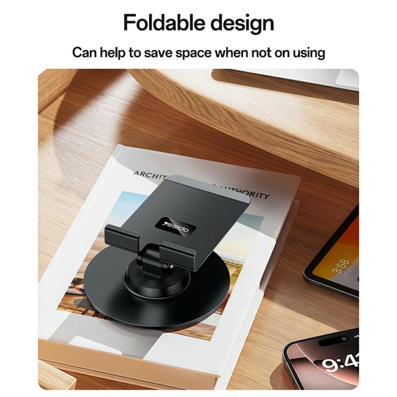 Yesido C300 Aluminiumlegierung Desktop-Ständer - 360° drehbarer und einstellbarer Halter für Telefone und Tablets