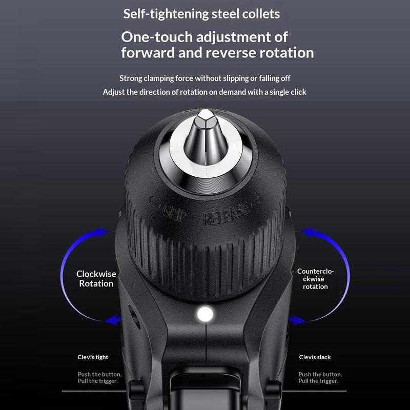 Der Schraubendreher verfügt über eine einfache Ein-Tasten-Steuerung für Drehungen im Uhrzeigersinn und gegen den Uhrzeigersinn, wodurch der Wechsel zwischen dem Anziehen und Lösen von Schrauben vereinfacht wird. Dies verbessert die Effizienz bei Montage-, Reparatur- und Wartungsarbeiten, insbesondere beim schnellen Wechsel zwischen verschiedenen Aufgaben. Dank der intuitiven Bedienung eignet sich das Werkzeug sowohl für erfahrene Anwender als auch für diejenigen, die ein praktisches Werkzeug für den täglichen Gebrauch suchen.