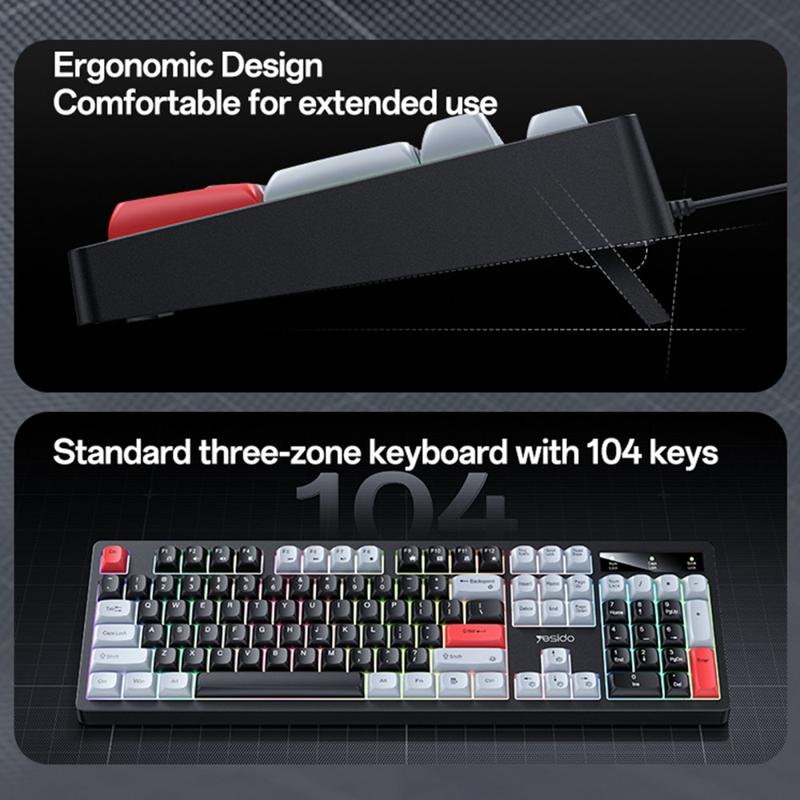 Verbessern Sie Ihr Tipperlebnis mit der kabelgebundenen mechanischen Tastatur YESIDO KB44, einer eleganten und langlebigen Tastatur in voller Größe, die leise Leistung mit lebendiger RGB-Hintergrundbeleuchtung verbindet. Entwickelt für Komfort, Langlebigkeit und Kompatibilität, ist sie ideal für Arbeit, Studium und Spiele.
