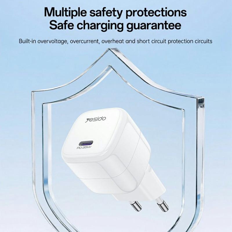 Yesido YC103 35W GaN USB-C PD Wandladegerät - Kompakter Schnellladeadapter mit Sicherheitsfunktion