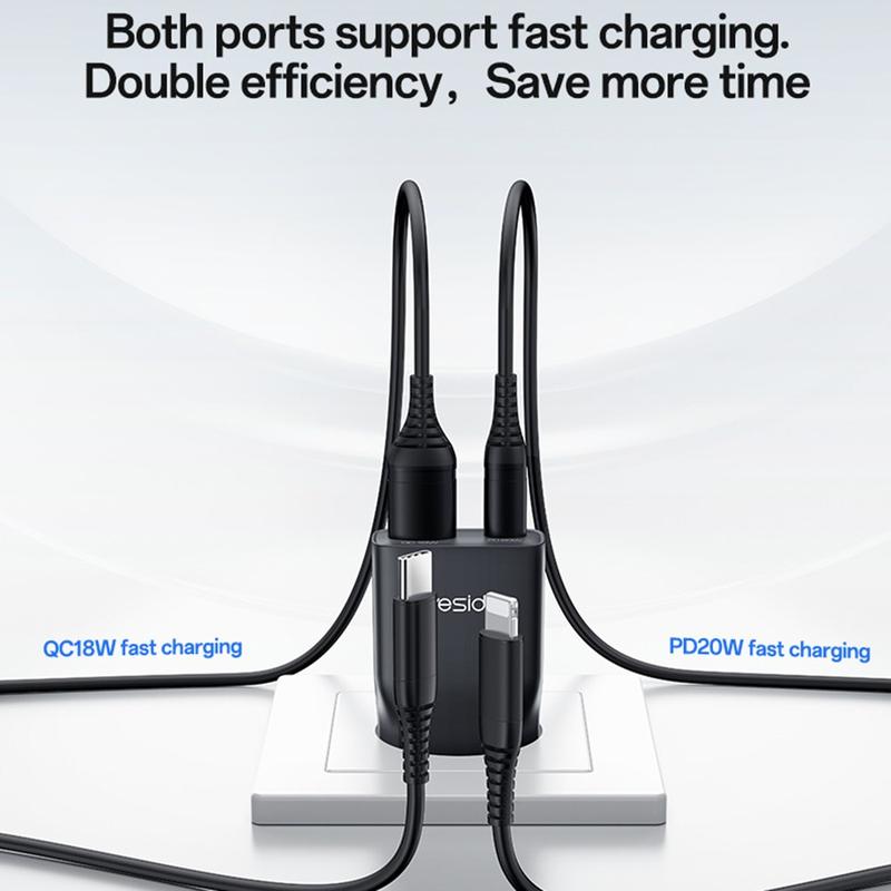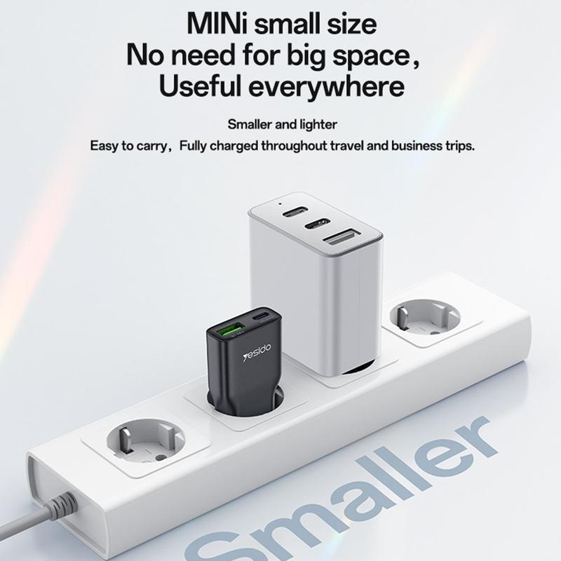 Laden Sie smarter und reisen Sie mit weniger Gepäck - mit dem ultradünnen Wandladegerät Yesido YC112. Dieser kompakte Adapter mit zwei Anschlüssen wurde für den täglichen Komfort entwickelt und vereint einen USB-C-Anschluss und einen USB-A-Anschluss in einem schlanken Gehäuse, das problemlos in Taschen, Hosentaschen, Schreibtischschubladen und Reise-Sets passt. Er ist eine praktische Lösung für Nutzer, die ein einziges Ladegerät sowohl für neuere USB-C-Geräte als auch für ältere USB-A-Kabel suchen, ohne einen sperrigen Adapter mit sich führen zu müssen.