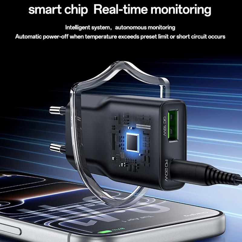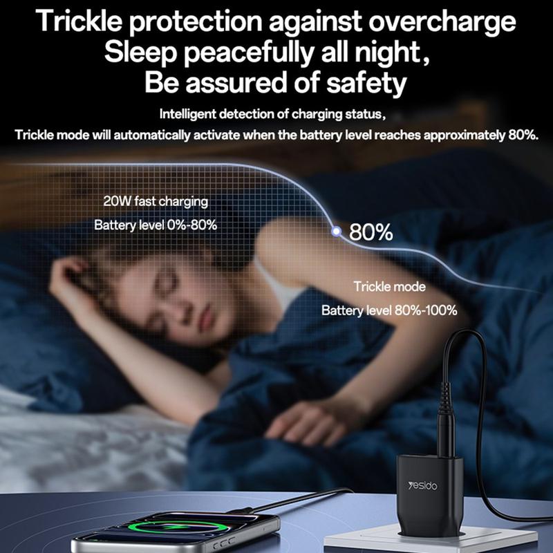 Der USB-C-Anschluss unterstützt Schnellladen mit bis zu 20W und eignet sich somit ideal für Smartphones, kleinere Tablets, Ohrhörer und andere kompatible Geräte. Der USB-A-Anschluss unterstützt ebenfalls Schnellladen mit bis zu 18 W, und wenn beide Anschlüsse gleichzeitig genutzt werden, liefert das Ladegerät eine stabile gemeinsame Ausgangsleistung für zwei Geräte. Dank der Unterstützung der Schnelllade-Protokolle PD und QC sorgt das YC112 für effizientes und sicheres Laden und reduziert gleichzeitig unnötige Wärmeentwicklung und Energieverluste.