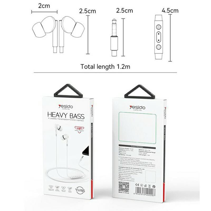 Yesido YH46 3,5-mm-Kabel-In-Ear-Kopfhörer mit HD-Mikrofon - Weiß