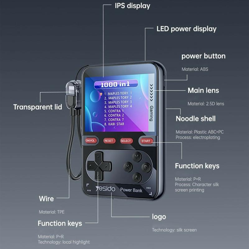 Yesido YP87 2-in-1 Spielekonsole Power Bank - 10000mAh, 2,8″ IPS-Bildschirm, 20 W Schnellaufladung
