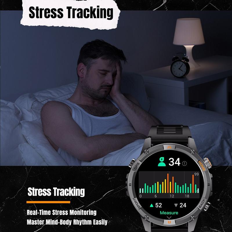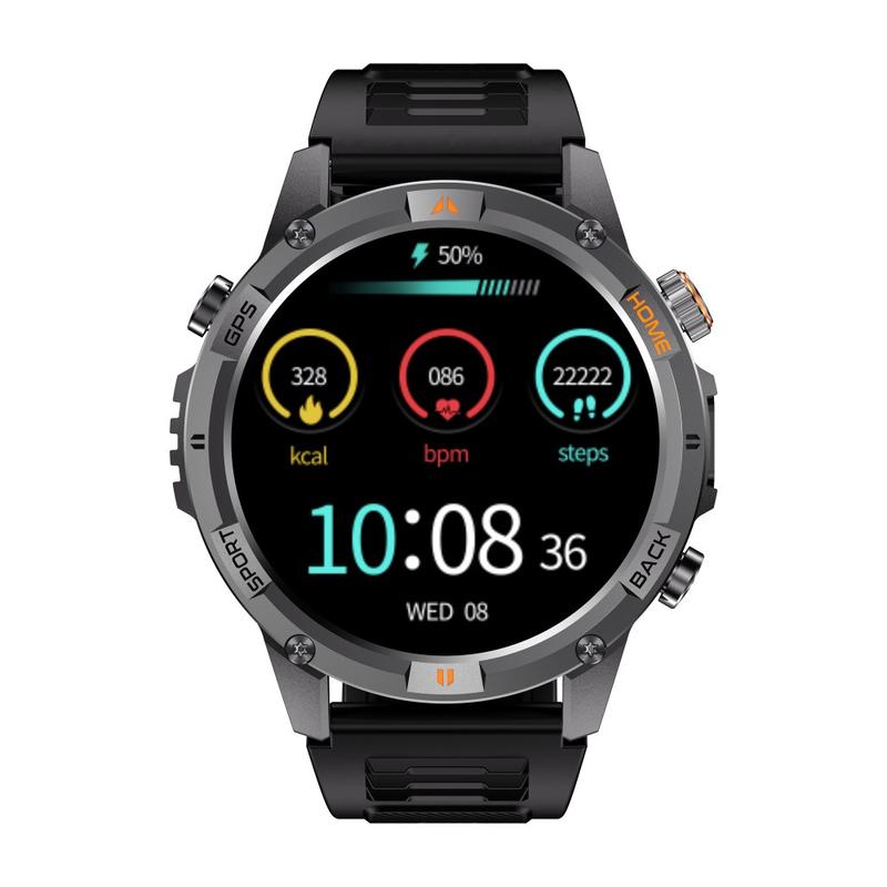Die Uhr wurde für Outdoor-Abenteuer entwickelt und verfügt über eine eingebaute Taschenlampe, GPS-Ortung und einen digitalen Kompass, damit Sie sich sicher auf Wanderwegen bewegen und Ihre Routen verfolgen können. Der 580-mAh-Akku mit hoher Kapazität bietet lang anhaltende Leistung mit bis zu 40 Tagen Standby-Zeit und ca. 7 Tagen bei normaler Nutzung. Dank der Wasserdichtigkeitsklasse IP68 übersteht das Gerät Regen, Spritzwasser und Schwimmen ohne Probleme.