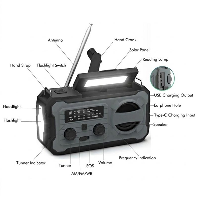 - Multifunktionales Überlebenswerkzeug: Radio, Taschenlampe, Leselampe, Solarladegerät und Powerbank