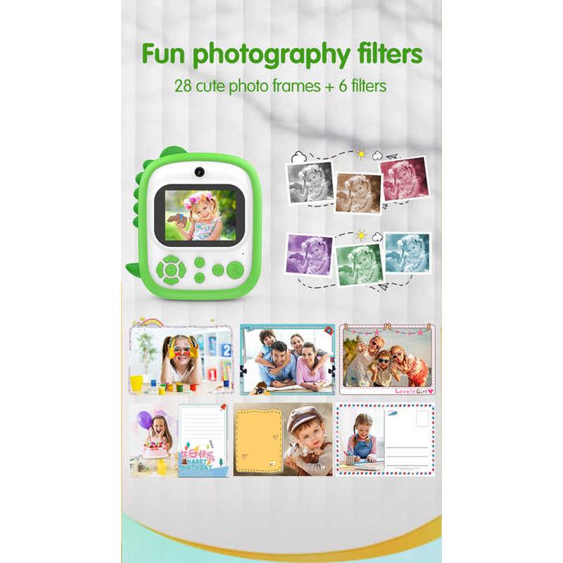 • YYTech P3 T-Rex Sofortdruck-Kinderkamera - 1080P, 2,4" Doppellinse, Blitz