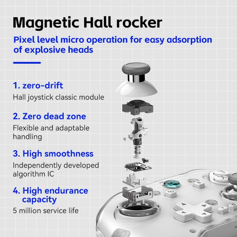- Fortschrittlicher Hall-Joystick & Dual-Trigger-Tasten: Hall-Joystick-Technologie und Dual-Trigger-Tasten, einschließlich Micro-Motion- und Hall-Trigger-Optionen, sorgen für präzise Steuerung und Reaktionsfähigkeit.